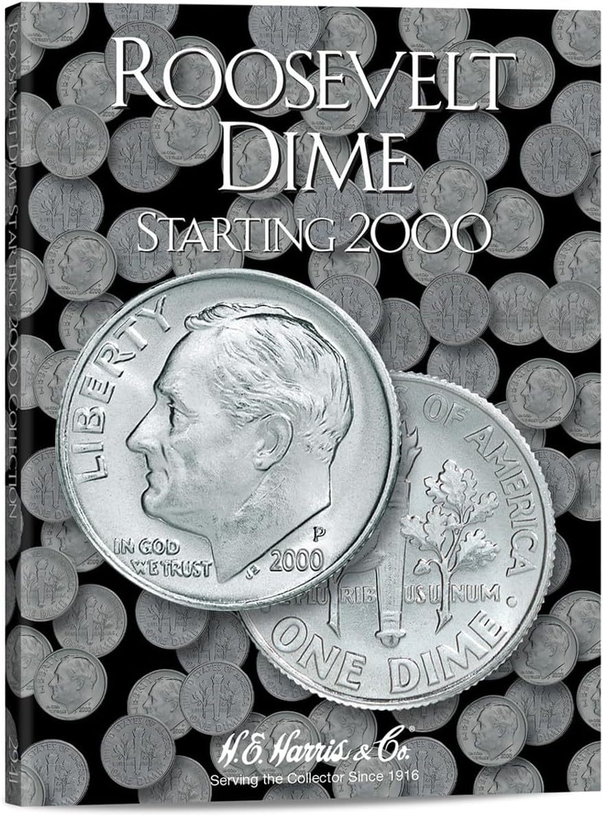 H.E. Harris & Co. tri-fold coin folders open flat for all-at-once viewing. Each H.E. Harris & Co. folder includes data pertaining to the coins it holds.The Mercury Dime, minted from 1916 to 1945, is a small silver coin cherished by collectors and numismatists. Measuring 17.9 millimeters in diameter, it features a captivating left-facing profile of Liberty wearing a winged cap, commonly known as the Mercury Dime. The goddess Liberty is depicted symbolizing freedom of thought, and the coin's design is embellished with the inscriptions "LIBERTY," the year of mintage, and thirteen stars representing the original colonies. On the reverse side, a fasces, encircled by the inscriptions "UNITED STATES OF AMERICA," "E PLURIBUS UNUM," and "ONE DIME," conveys strength and unity. With its intricate design and historical significance, the Mercury Dime remains a treasured artifact representing a transformative era in American history. The Roosevelt Dime, introduced in 1946, is a widely circulated coin that holds both historical significance and sentimental value. With a diameter of 17.9 millimeters, it features a left-facing portrait of President Franklin D. Roosevelt on the obverse side, honoring the 32nd President of the United States. The reverse side showcases symbols of freedom, peace, and strength through a torch, an olive branch, and an oak branch. With inscriptions such as "UNITED STATES OF AMERICA," "E PLURIBUS UNUM," and "ONE DIME," the Roosevelt Dime pays homage to Roosevelt's leadership and serves as a reminder of his enduring legacy.