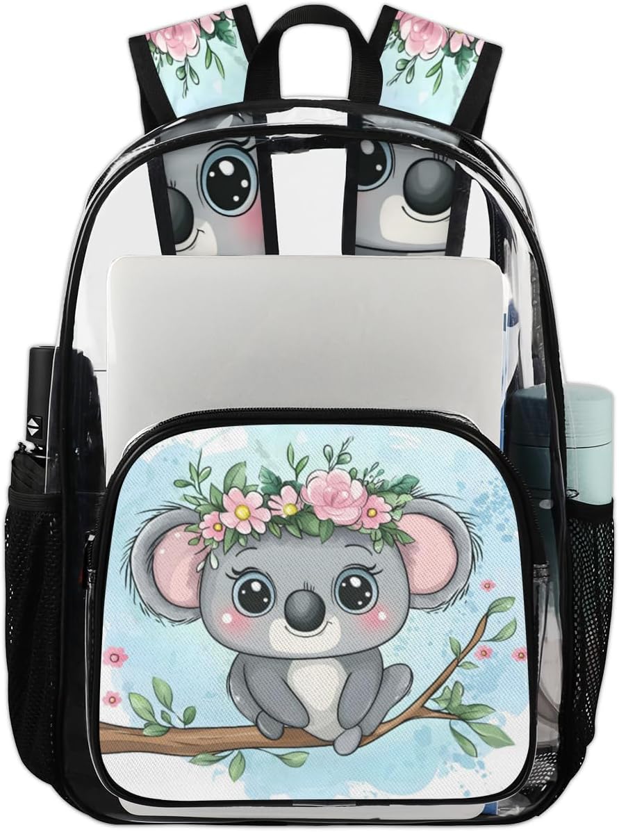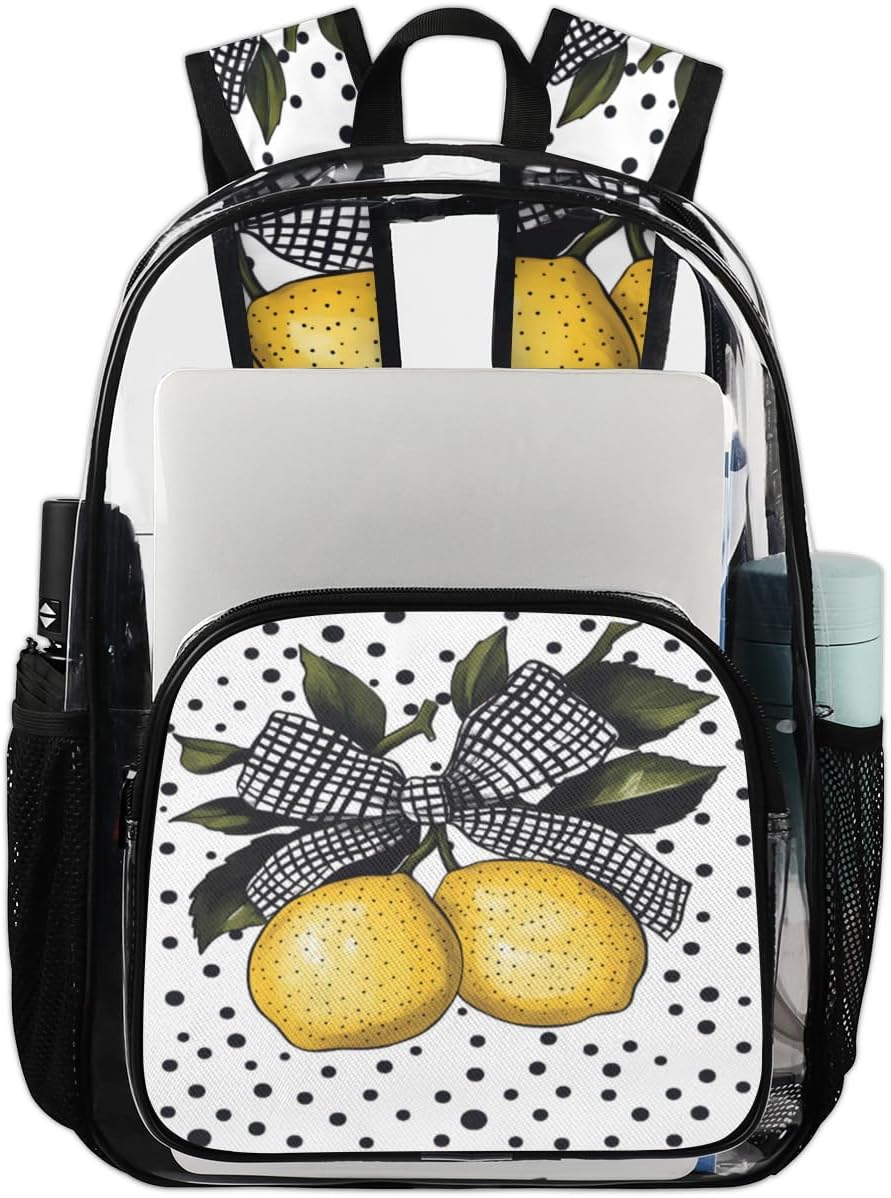 This large heavy duty clear backpack has a spacious main compartment with a separate laptop compartment. Stores up to a 16.5-inch laptop. Easily accommodate organizers, makeup bag, clothes other essentials. Front zippered pocket for storing small items and 2 side mesh pockets for water bottlesMade of durable and waterproof PVC plastic material. Transparent design helps to find items quicklyThis clear backpack for adults men and women is suitable for a variety of occasions. Including traveling, work, airports, hiking, fitness, sports, beach, pool, camping and attending sporting events and concerts. It can be used as a travel backpack, carry-on backpack, weekend overnight backpack, work backpack and moreExterior Dimensions: 11.2 x 6.2 x 17.7 inchesWeight: 1.1 lbCapacity: 20 litresMaterial: PVC and PolyesterOpening and closing method: ZipperProduct includes: 1 backpackCare InstructionsRegular Cleaning: To remove dirt and odors, clean your bag with a damp cloth after every useDrying: Ensure the bag is completely dry after each use before closing or storing it