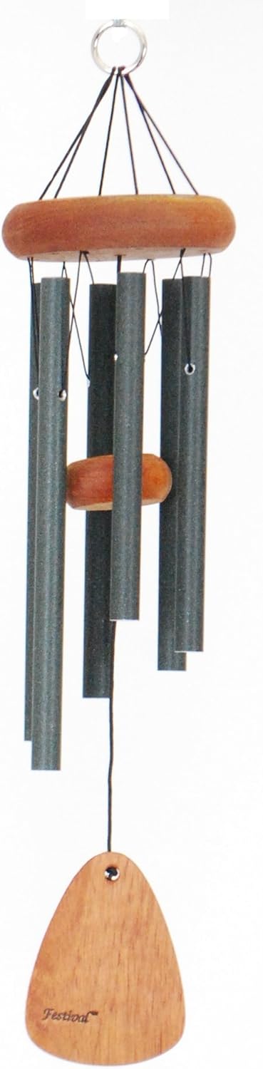 Festival 18-inch Redwood Wind Chime in Black by Wind River for Patio, Backyard, Garden, and Outdoor décor. Made in The USA