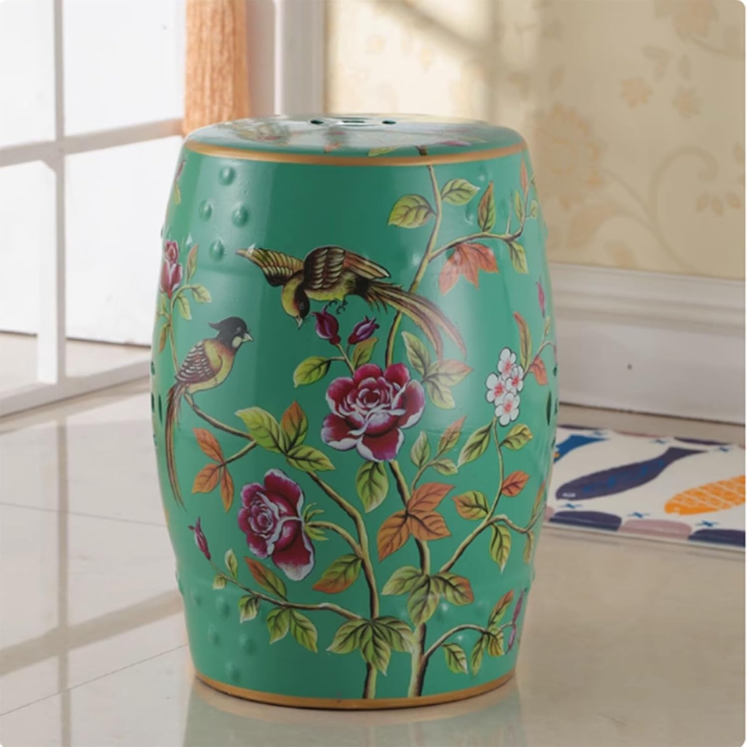 Elevate your home decor with our ceramic drum stool! It blends Chinese charm and Western classics, hand-painted with vivid floral and butterfly patterns, and fired twice for long-lasting color. Made of hand-pressed molds and high-temperature firing, it is sturdy and durable. Suitable for living rooms, study rooms and other places - can be used as a side table, shoe-changing stool or decoration. It is also an ideal gift for weddings and housewarming gifts. Add an artistic touch to any space!Product Name: Ceramic Drum StoolMaterial: High-quality ceramicColor: As shown in the picturePackage Contents: 1 × Ceramic Garden StoolNotes:1. Due to different monitors and lighting effects, the actual color of the product may be slightly different from the picture.2. Due to manual measurement, please allow 1-3 cm deviation in the measurement.3. Small black spots and pinholes may appear during the production process, which is normal. Perfectionists please handle with care.4. Do not use steel wool or hard objects to scratch when cleaning. Minor scratches are normal when using metal knives and forks.5. If you have any questions about this product, please contact us by email. We will reply you in detail. Thank you for your support. Thank you for your visit and wish you a happy shopping!