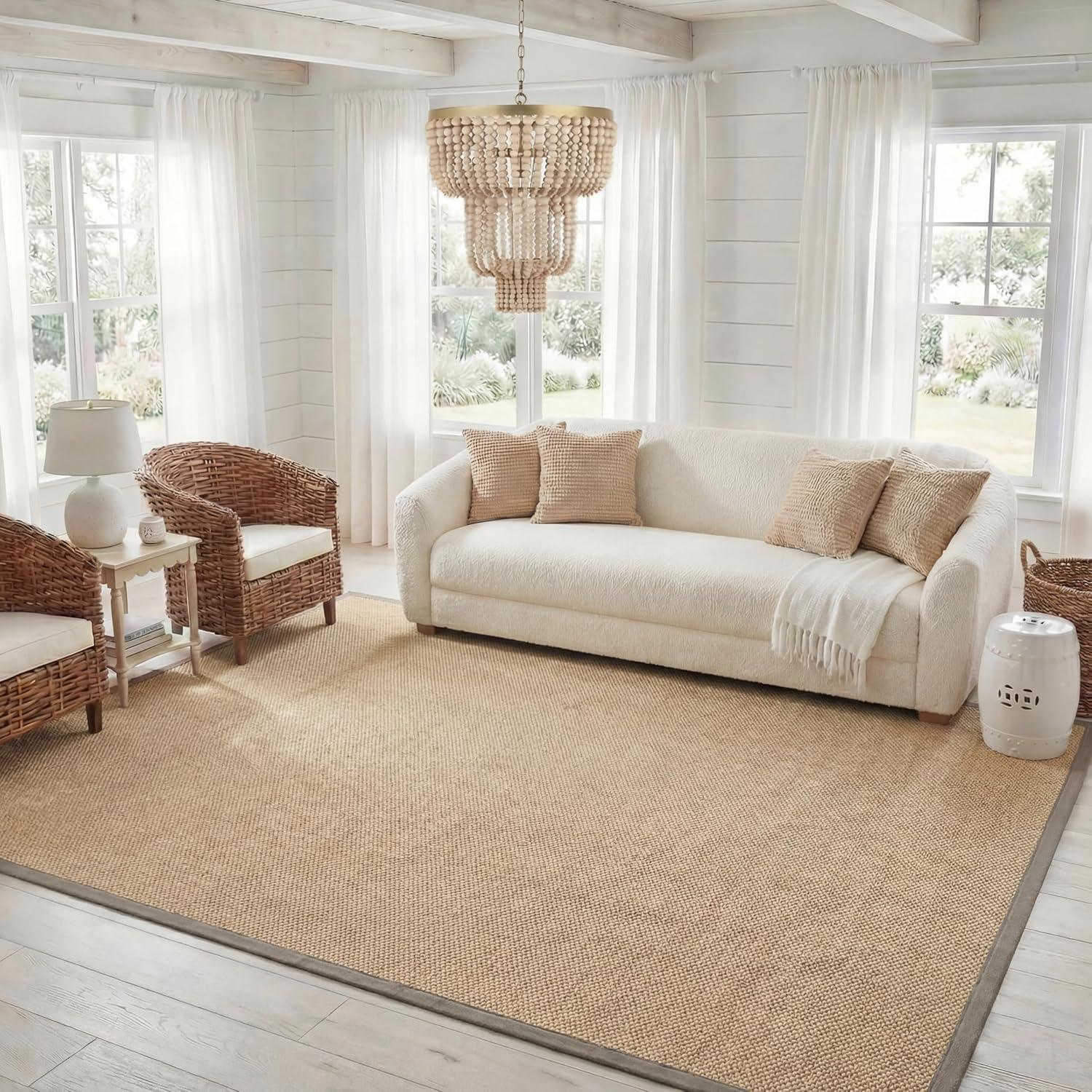 Bring texture, definition, and natural beauty to your space with this natural fiber rug, machine-woven from premium sisal fibers. A durable fabric border frames the rug, helping to create a well-defined, polished look in any room. Designed for both style and function, this sisal rug adds warmth and organic charm to a variety of décor styles, from coastal to farmhouse to modern casual. Please note: sprouting and shedding are natural characteristics of plant fibers, enhancing the rug’s authentic look and feel. Upon arrival, allow time for any creases to flatten and settle for the best appearance. Avoid placing in direct sunlight as this may cause the rug to fade over time.