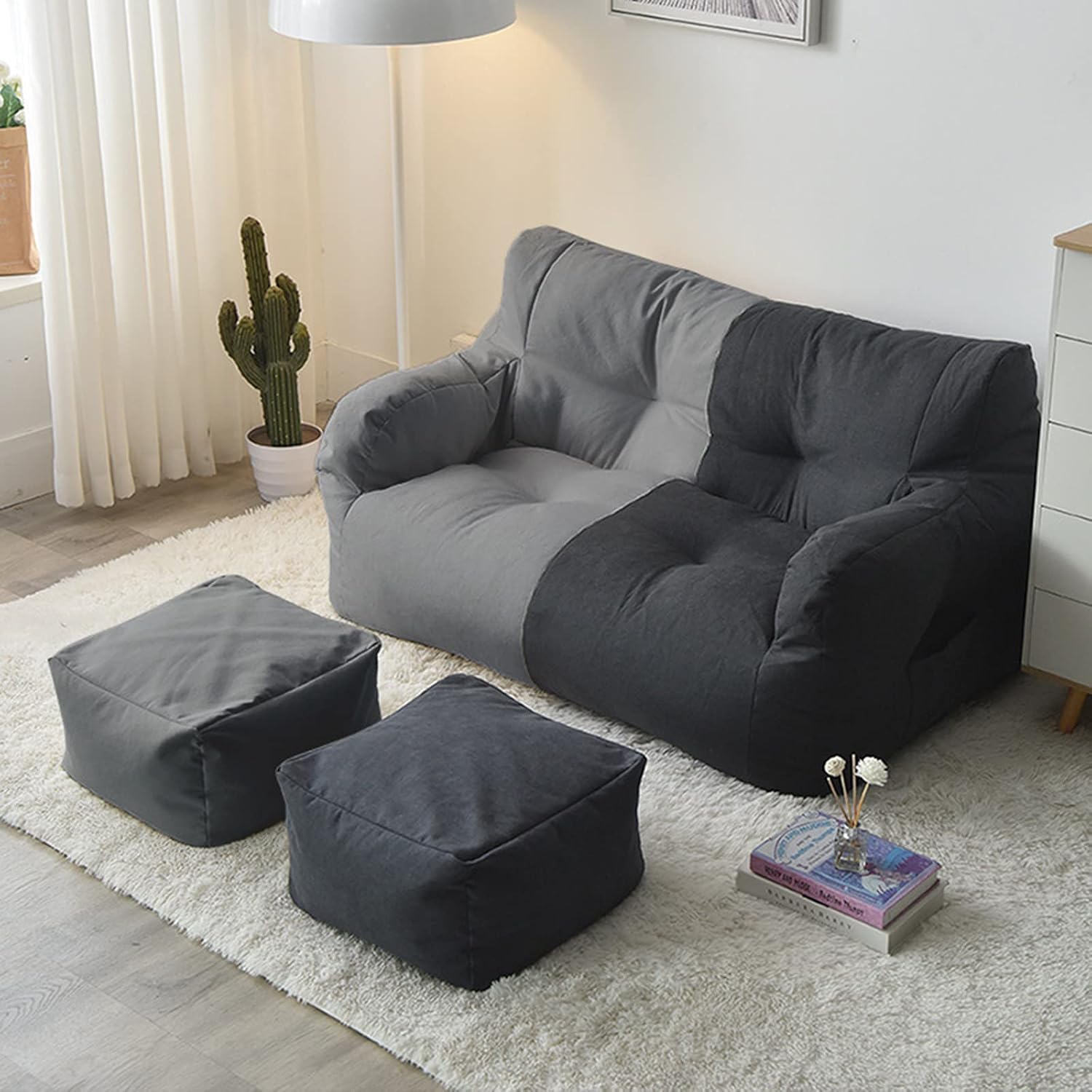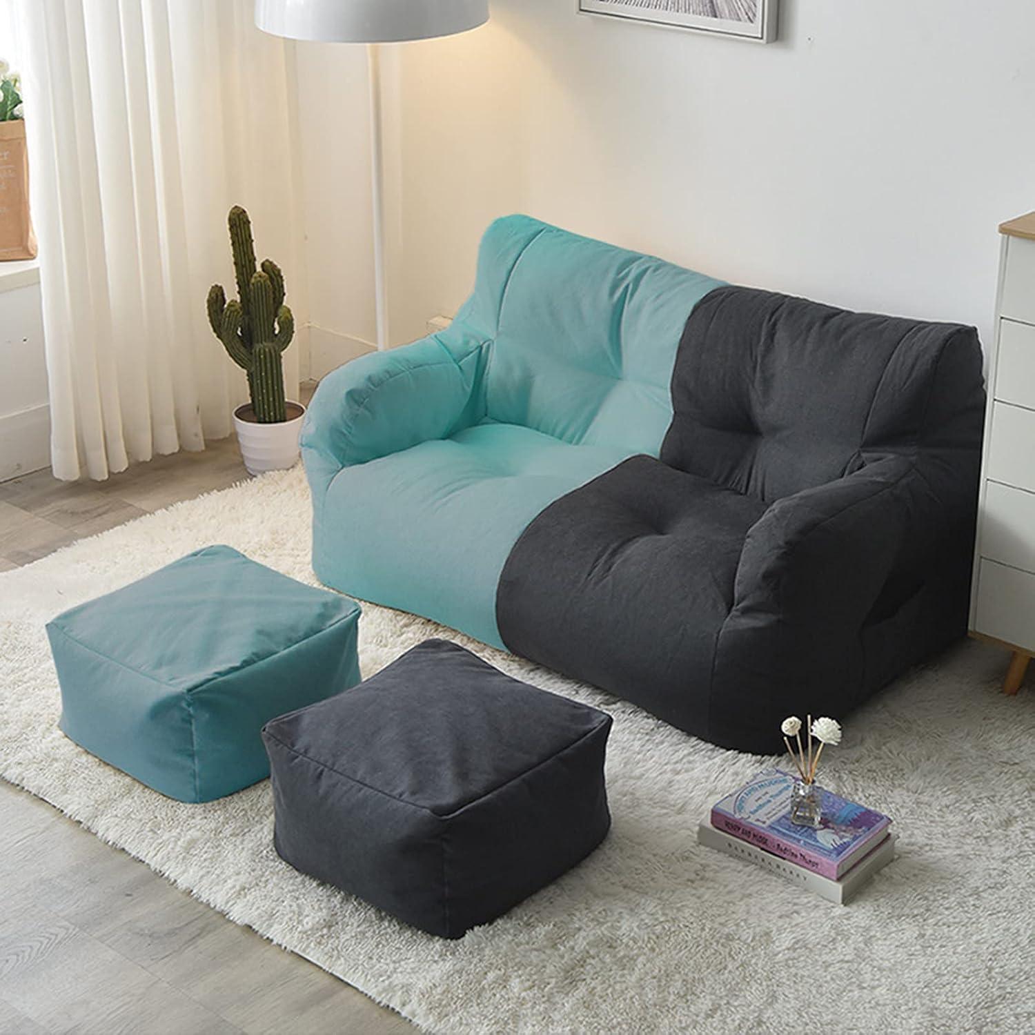 Bean bag recliner cover/bean bag lazy sofa cover/storage bean bag coverNote: This product is a cushionless sofa coverThis bean bag (without filler) is perfect for reading, watching movies, playing video games or hanging out. The bean bag series is a must-have item in every room. They are also very suitable for day care, classrooms, kindergartens, libraries and study rooms. The perfect gift These adult-sized memory foam chairs provide fun and unique gifts for birthdays, Christmas, graduation ceremonies, baby showers and housewarming gifts.feature:-High-quality cotton and linen fabric, soft and breathable. The thread end is strong and durable.-Comfortable, very suitable for sitting, hanging out, playing games and watching movies.Color: beige stitching, beige dark gray stitching, beige blue stitching, yellow dark gray stitching, green dark gray stitching, gray dark gray stitching, dark gray, light gray, dark blue, light blue, beige, redFootstool color: corresponding to bean bag colorMaterial: fabricSize: as shownPackage Included:1 x bean bag lid (excluding fillings)2 x Footstool cover (without padded)****Single bean bag with single pedal covernotes:-The amount is taken from an underfilled lentil bag. Due to manual measurement, please allow a difference of 1-3CM.-Due to different monitors and different lighting, the picture may not reflect the actual color of the item. Thank you for your understanding.