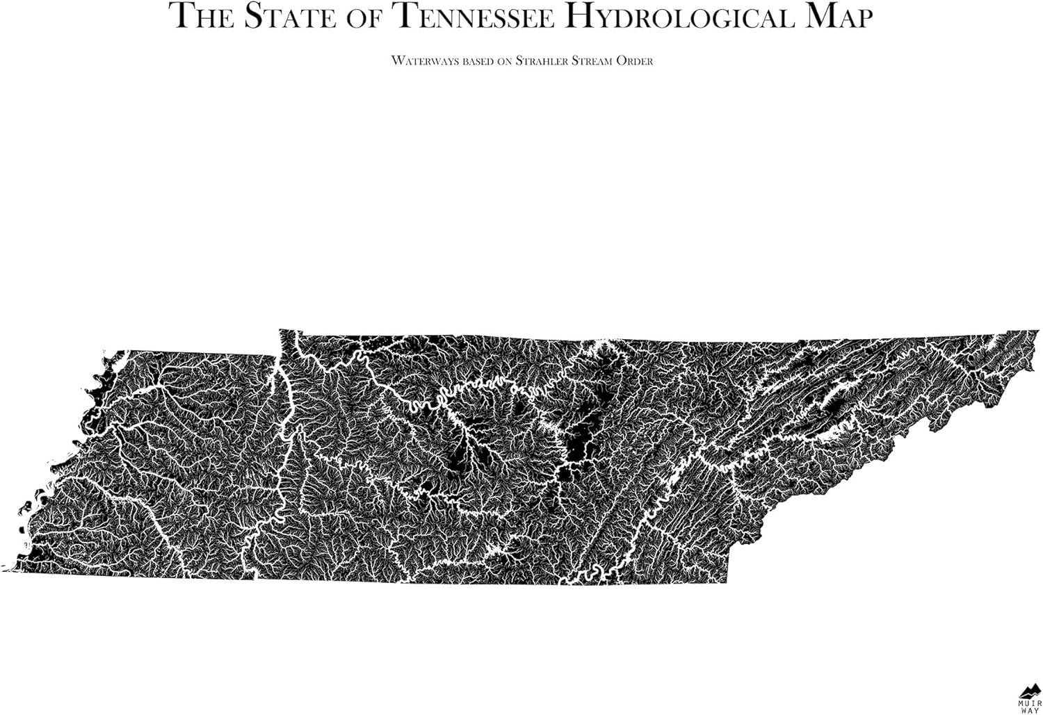 • Mapped by Nature - Rivers and Streams in Stunning Detail: This map showcases the full network of rivers, streams, and tributaries using detailed hydrological data and the Strahler stream order system. Each waterway is drawn with precision and visualized in a bold black palette. A unique way to experience the landscape - perfect as wall art or a gift for anglers, hikers, and nature lovers.