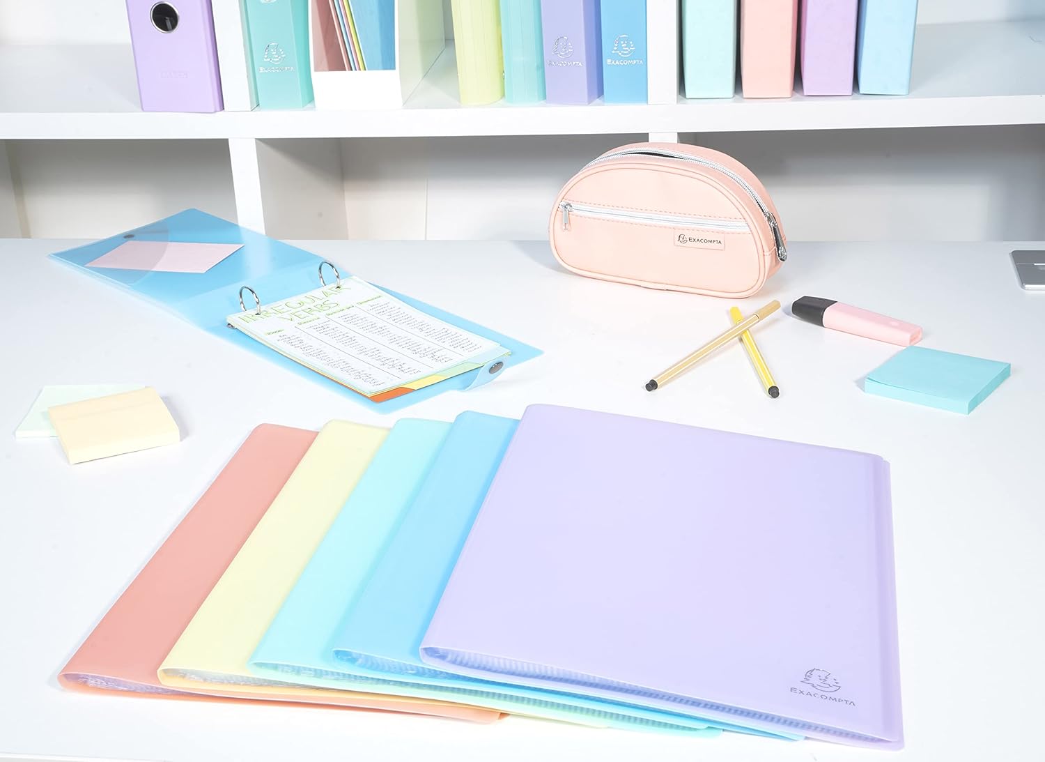 Following the success of the Chromaline range, very popular in school and office, Exacompta launches Chromaline pastel, an assortment of soft colors for a zen and hygge atmosphere. For the home office or school, find the essentials of the translucent polypropylene filing in trendy colours matching the Aquarel range. Also known as display cases or binders, the document covers allow easy flipping of documents. To choose your portfolio, identify the number of pages in your folder and choose the capacity accordingly. 1 pocket = 2 views (front and back). Document holders are also called display books, or bindings, or even Lutin. They are intended to classify and protect documents that will be consulted like a notebook. Consider the document covers with pocket on the cover. Customizable, they ensure beautiful presentations. A semi-rigid or rigid display book will be easier to store upright on a shelf. It will better support large ranking abilities. A very rigid document cover can be used as a press-book or menu. Made of PVC, the cover is made of rigid cardboard covered with PVC.
