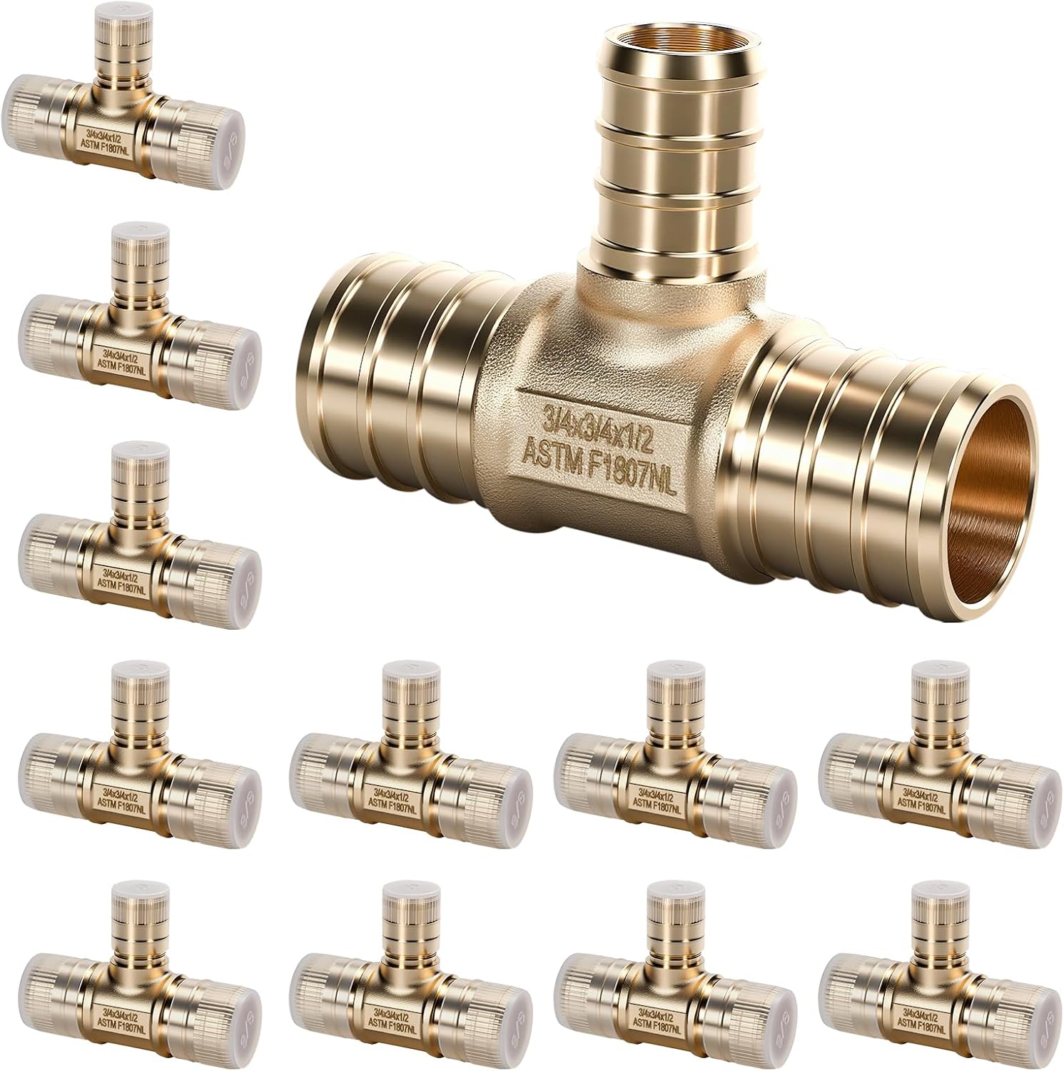 Upgrade your plumbing projects with this 24PCS set of 3/4-inch x 3/4-inch x 1/2-inch PEX B reducing tee fittings, designed for quick repairs or new installations. Crafted from high-quality, lead-free brass, these fittings are certified to NSF/ANSI/CAN 372-2022 standards, ensuring safe, contamination-free performance for drinking water systems. Ideal for both residential and commercial use, they offer exceptional durability, resisting corrosion, scaling, and temperatures from 32°F to 200°F for long-lasting reliability. These versatile reducing fittings are perfect for a wide range of applications, including potable water lines, hydronic heating, RV plumbing, and underfloor heating systems. Whether you're a DIY enthusiast or a professional contractor, this set simplifies your plumbing tasks. Compatible with PEX B tubing and standard connection methods like crimp rings, clamp rings, or copper rings (sold separately), these reducing tee fittings ensure seamless integration into your plumbing system. Trust in their robust construction for dependable, leak-free connections every time.