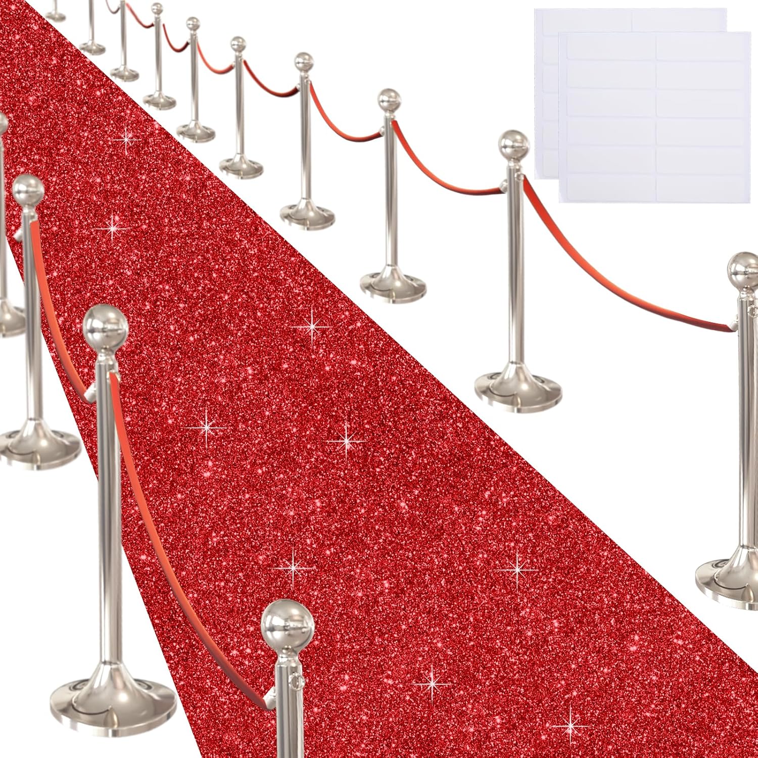 Transform any space into a glamorous red-carpet venue with this stunning 55 GSM thickness non-woven fabric runner rug. Perfect for creating that Hollywood-worthy entrance at weddings, proms, graduations, or special events, this carpet runner comes complete with adhesive tape for secure placement. The durable construction ensures it can withstand foot traffic while maintaining its elegant appearance throughout your event. Versatile enough for both indoor and outdoor use, this runner rug adds a touch of sophistication to hallways, aisles, and walkways. Whether you're planning a movie-themed party or a formal ceremony, this runner provides the perfect foundation for your event decor. The included carpet tape ensures easy installation and removal, making setup a breeze. Make your next event memorable with this classic runner rug that combines style and practicality.