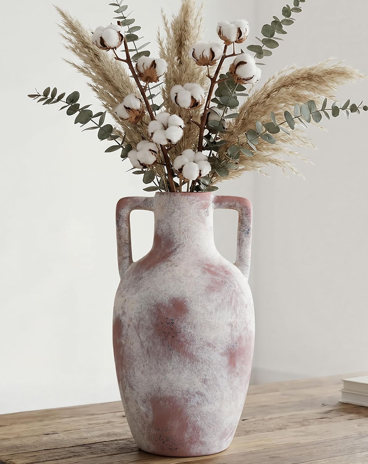 FancyPlus Flower Vase with Handles, 12.8 inch Tall Ceramic Vase Farmhouse Rustic Vases Decorative Pottery Vases for Home Decor Living Room Table Bookshelf Centerpiece Bouquet Wedding Fireplace (White)