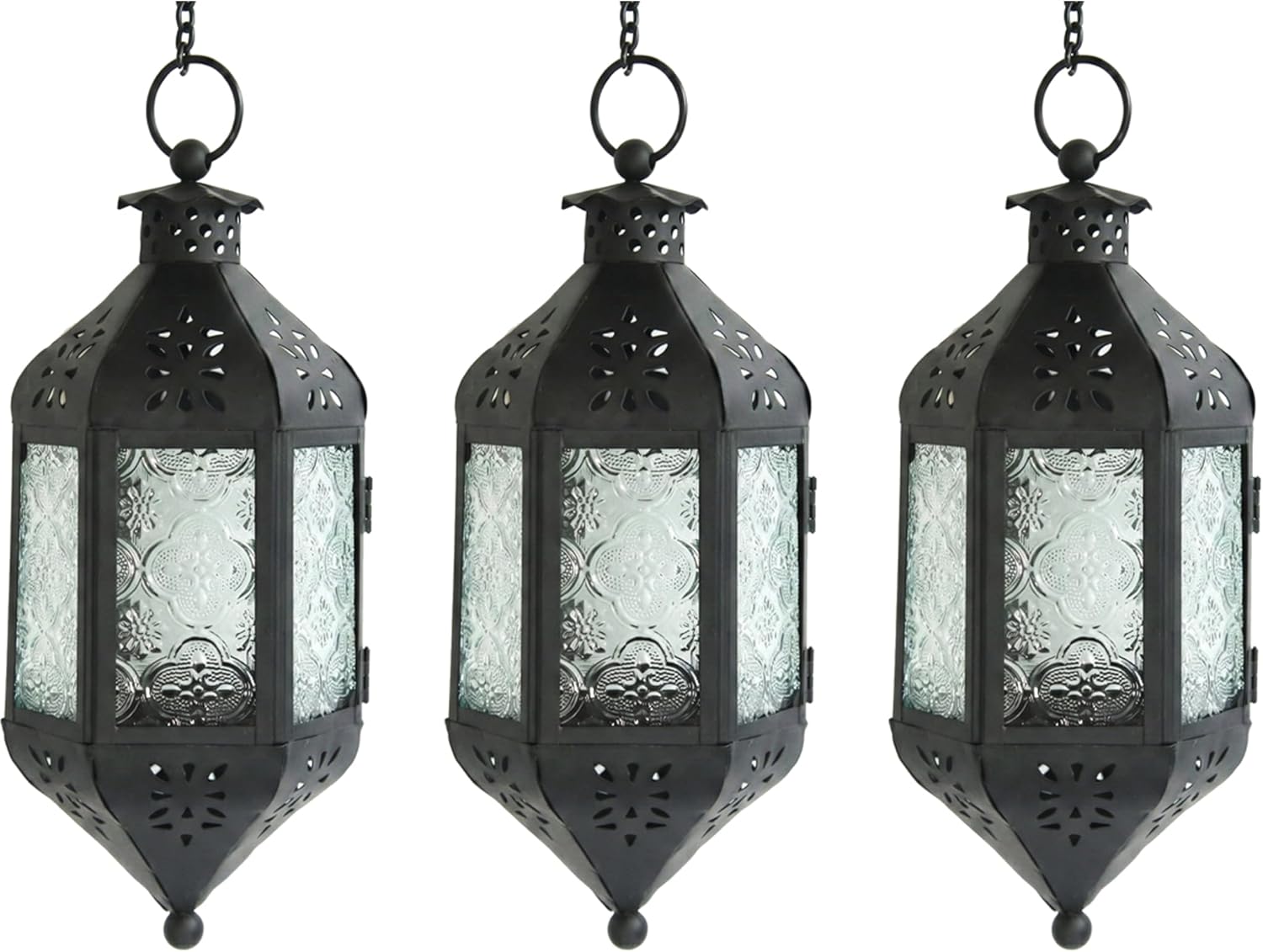 These lantern decorative candle holders for home decor adds color, pattern and an exotic global vibe to your patio or porch. Also great for indoors or outdoors, Ramadan, holidays, funerals, weddings, parties, patio, and corporate events. Iron and glass. They have a rustic feel, and yet they add a sense of other worldliness. Their colorful glass bounce light in unique patterns around any space. They are a popular choice among designers due to their style, economical price, and overall craftsmanship.