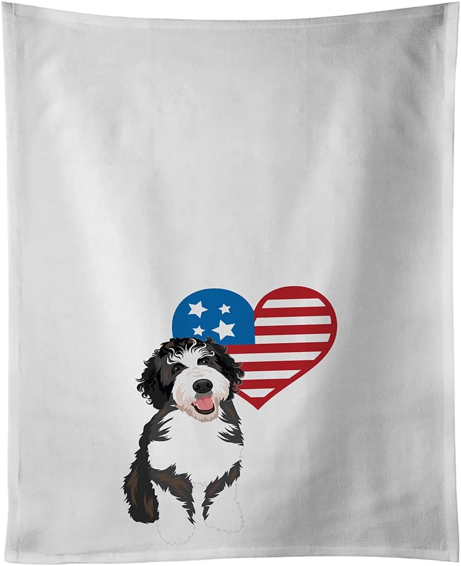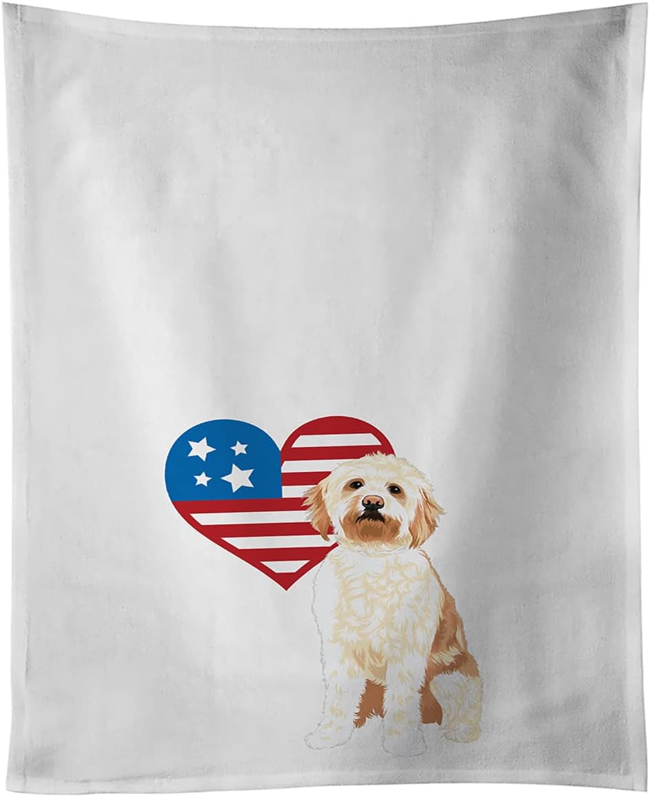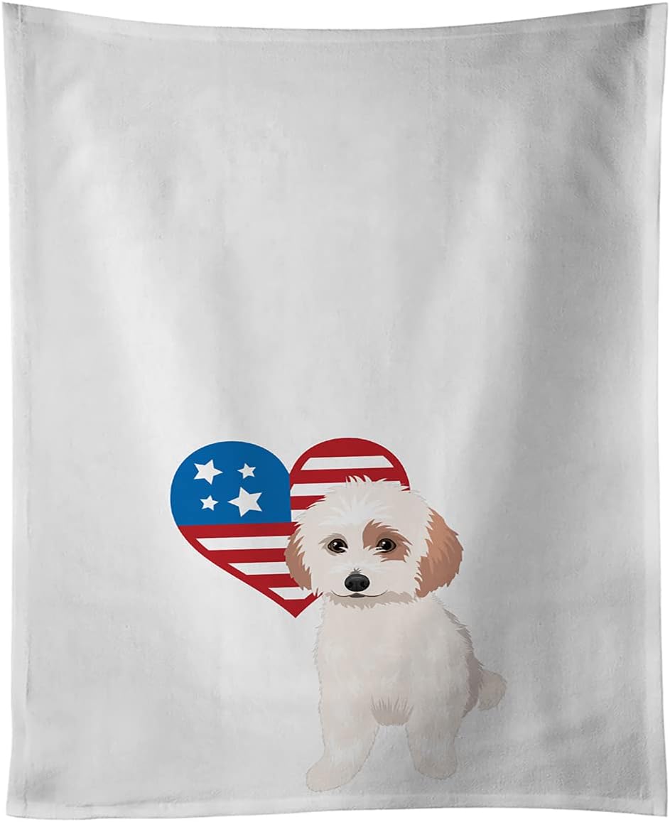 White Kitchen Towel Set of 2 featuring breed specific Poodle artwork. This White Kitchen Towel Set of 2 is from Caroline's Treasures collection Patriotic USA. Beautiful artwork from one of our artists makes this a great gift and a great addition to any kitchen. A set of Two Kitchen Towels that are 100 percent cotton. Each white towel measures 19 inches by 28 inches. Each towel features a printed full color artwork design. Machine wash cold and dry with low heat. Always use a pressing cloth when pressing the design.
