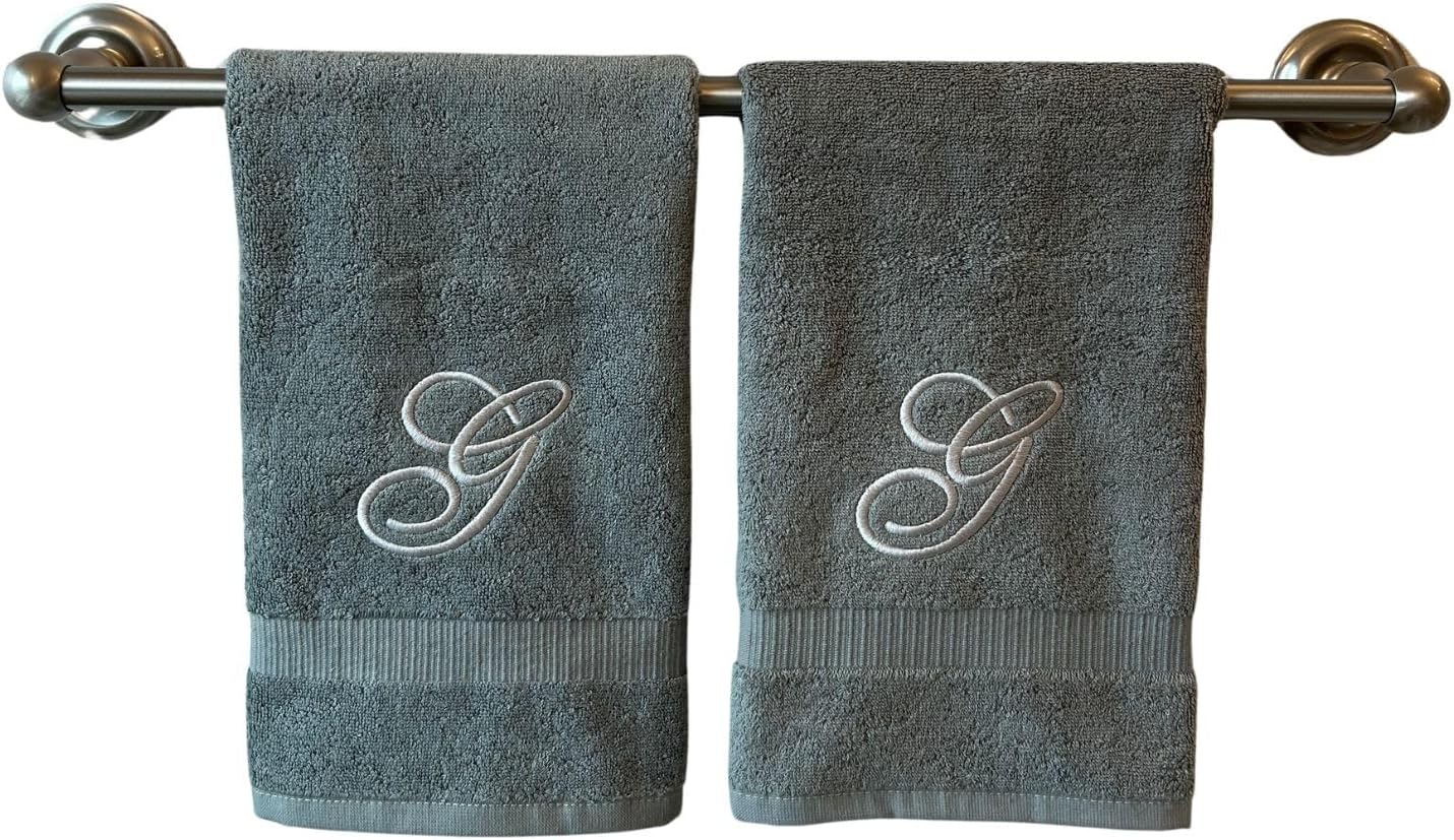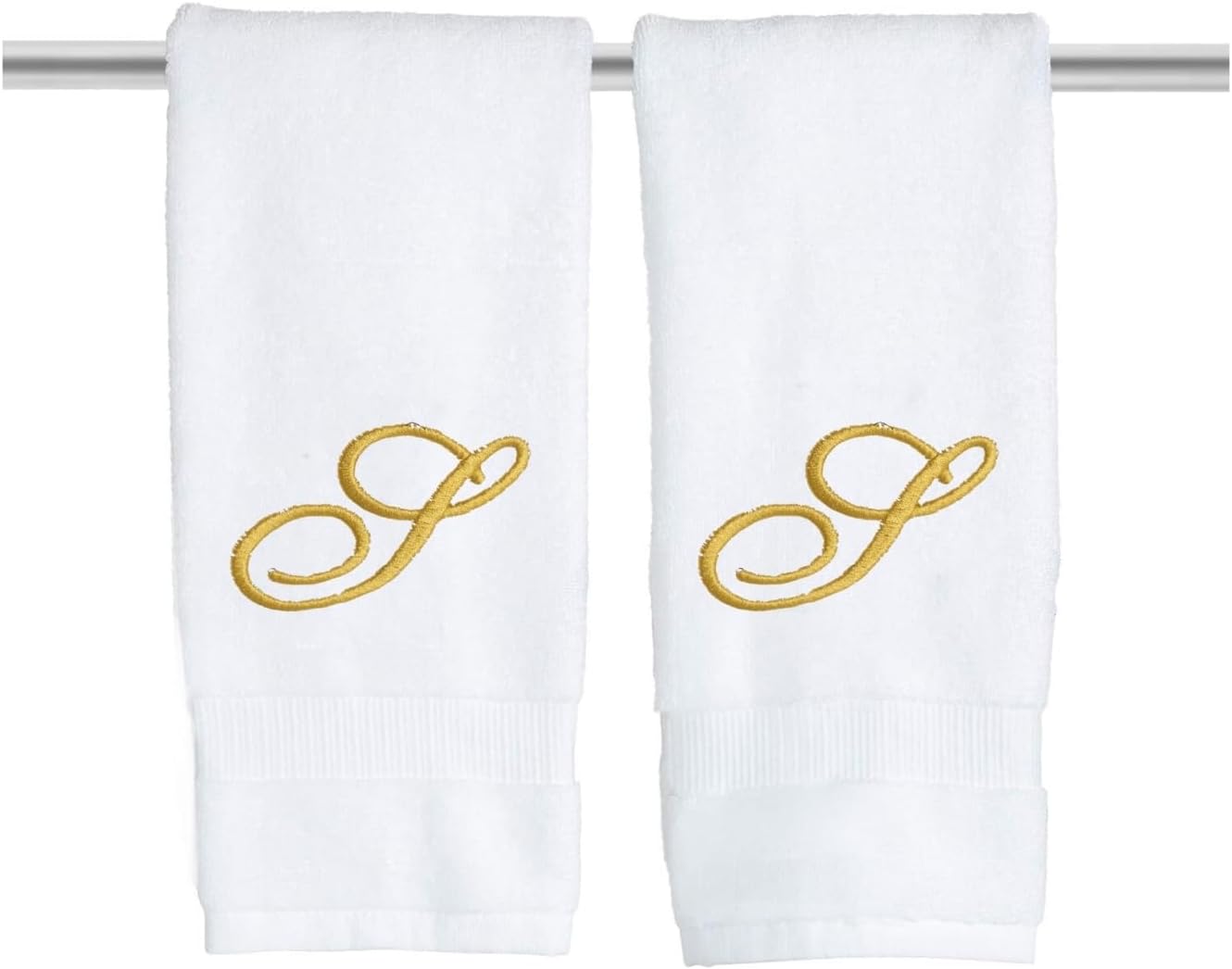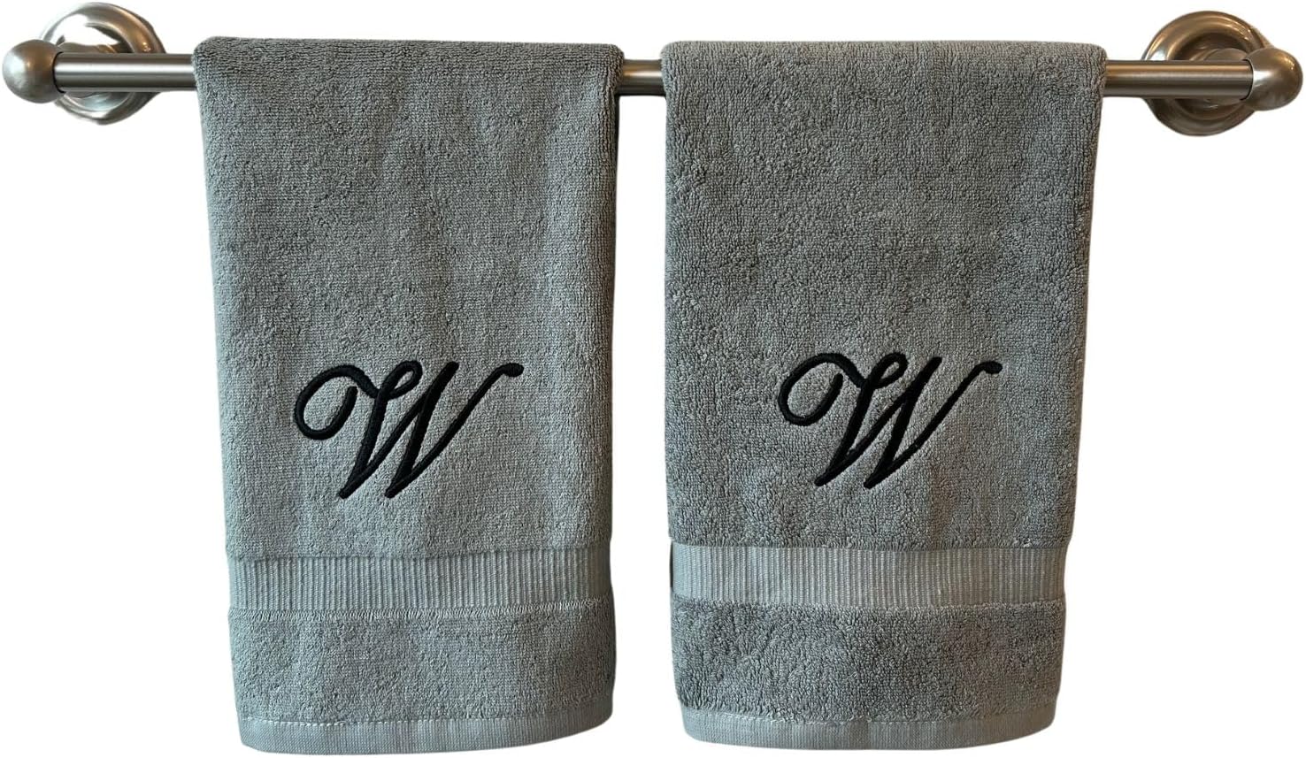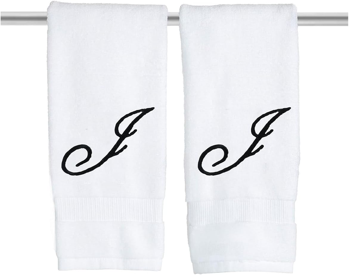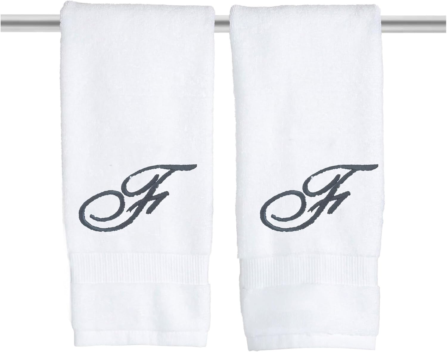 GOTS Organic certified set of two white luxury quality monogrammed hand towels for bathroom or powder room gives your home that hotel or spa like vibe