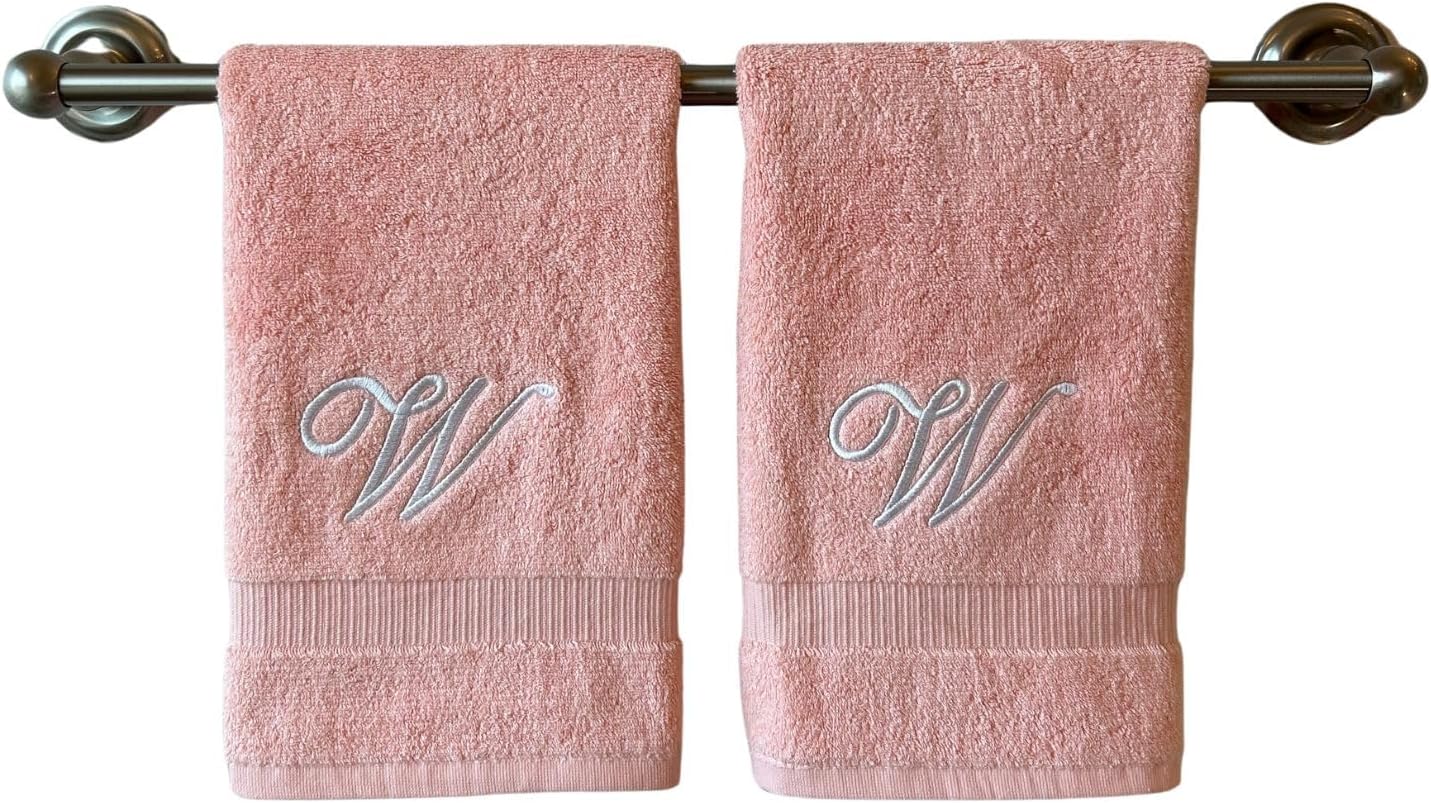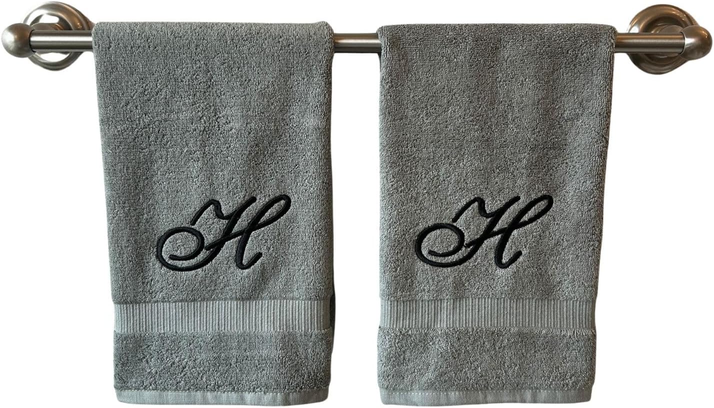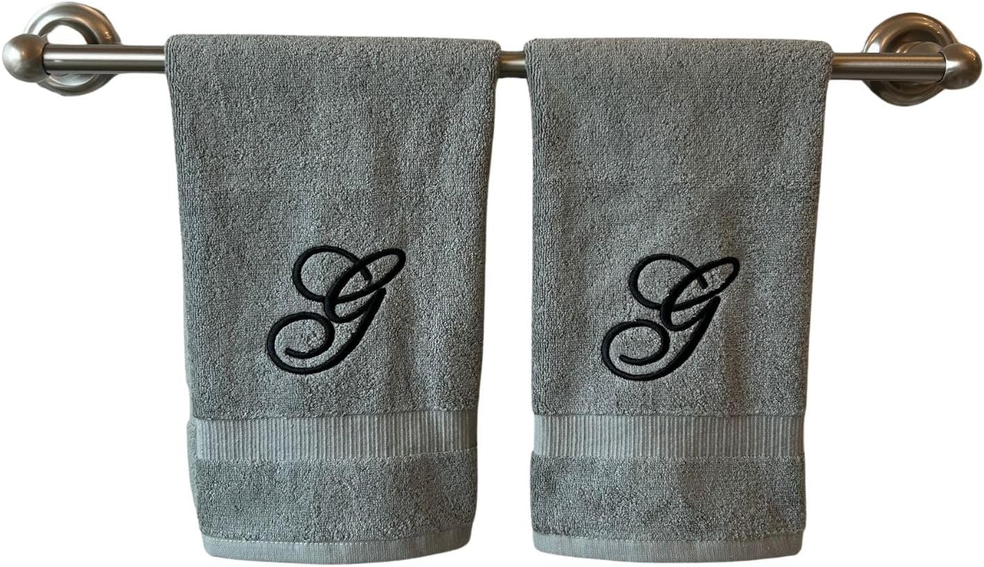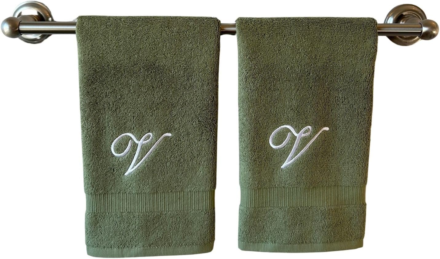 GOTS Organic certified set of two white luxury quality monogrammed hand towels for bathroom or powder room gives your home that hotel or spa like vibe