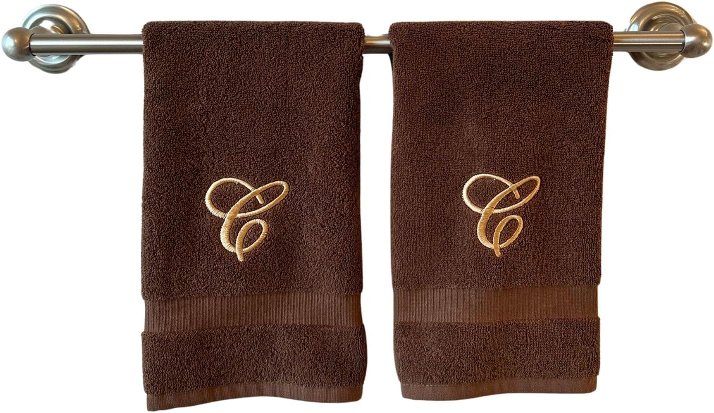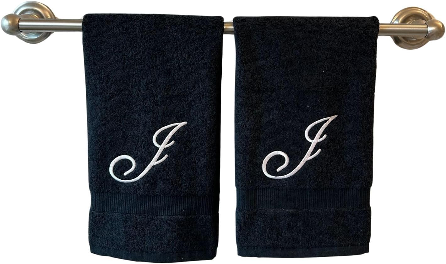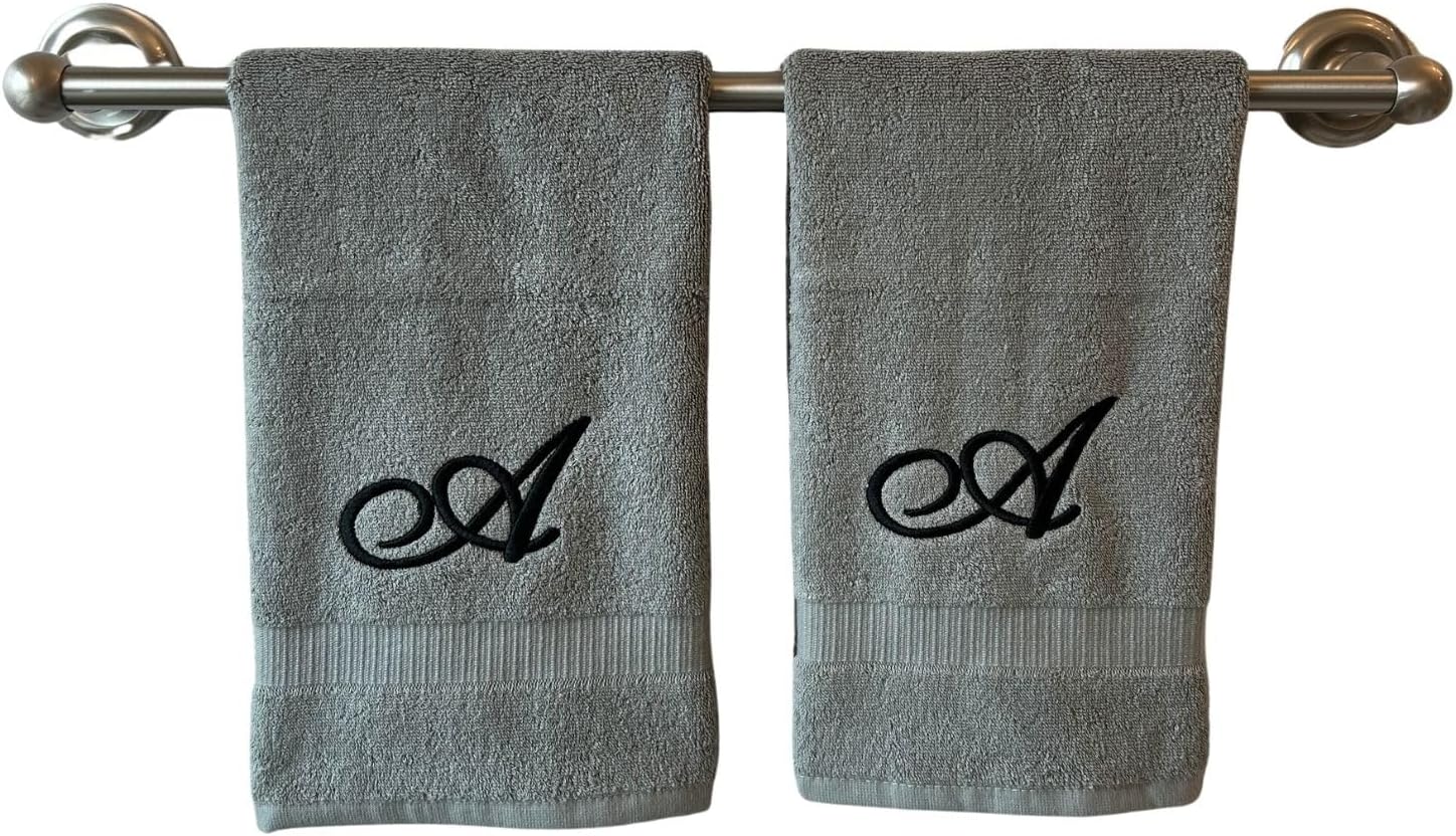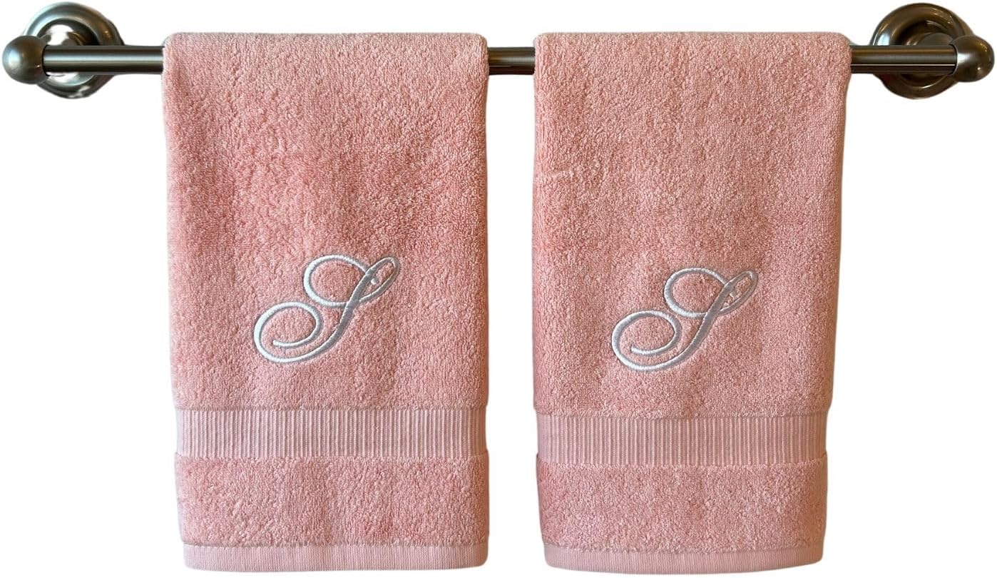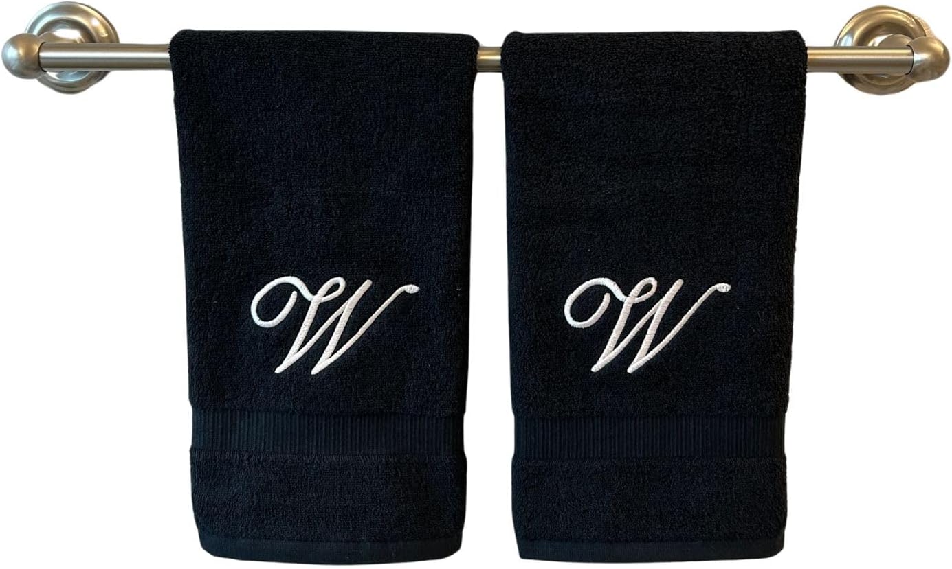 GOTS Organic certified set of two white luxury quality monogrammed hand towels for bathroom or powder room gives your home that hotel or spa like vibe