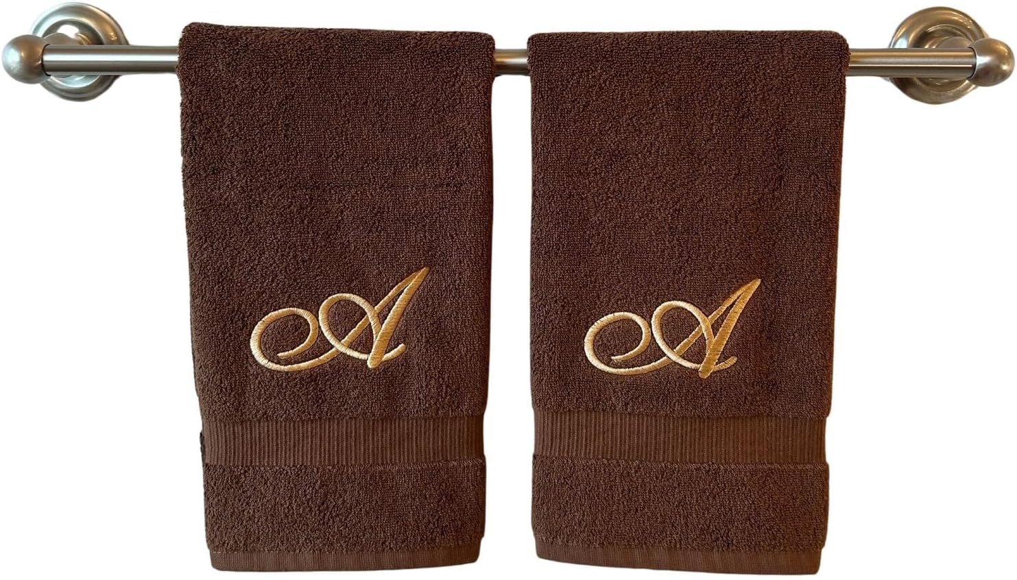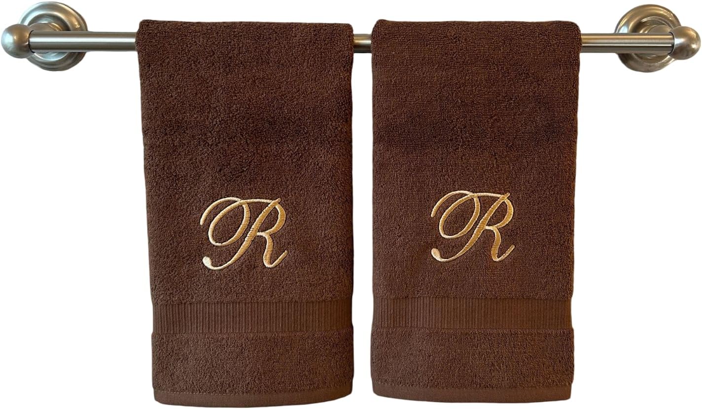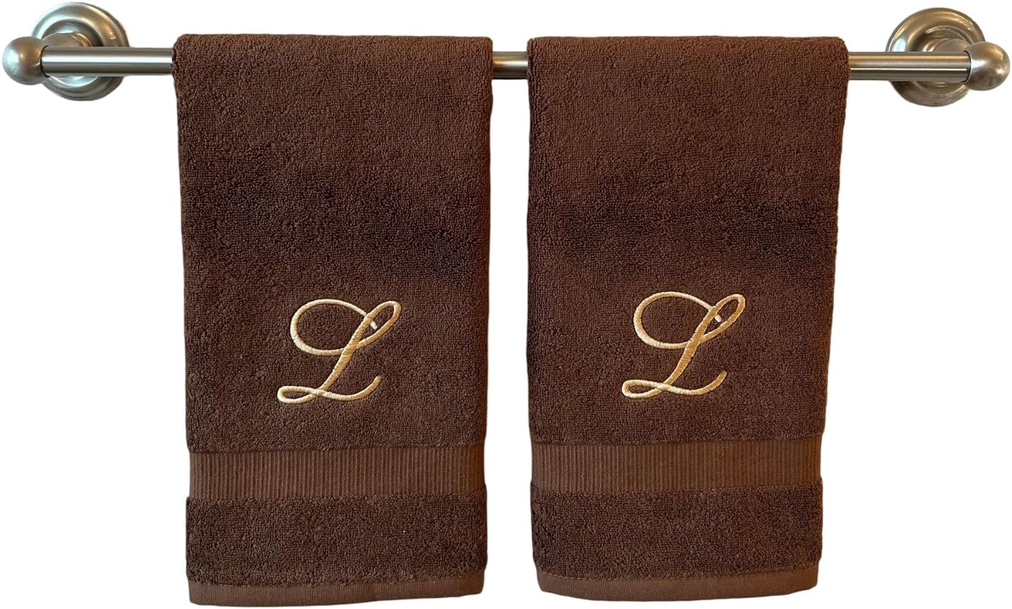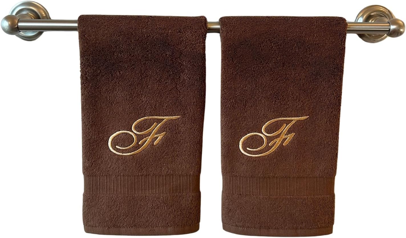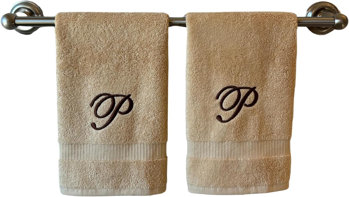 GOTS Organic certified set of two white luxury quality monogrammed hand towels for bathroom or powder room gives your home that hotel or spa like vibe