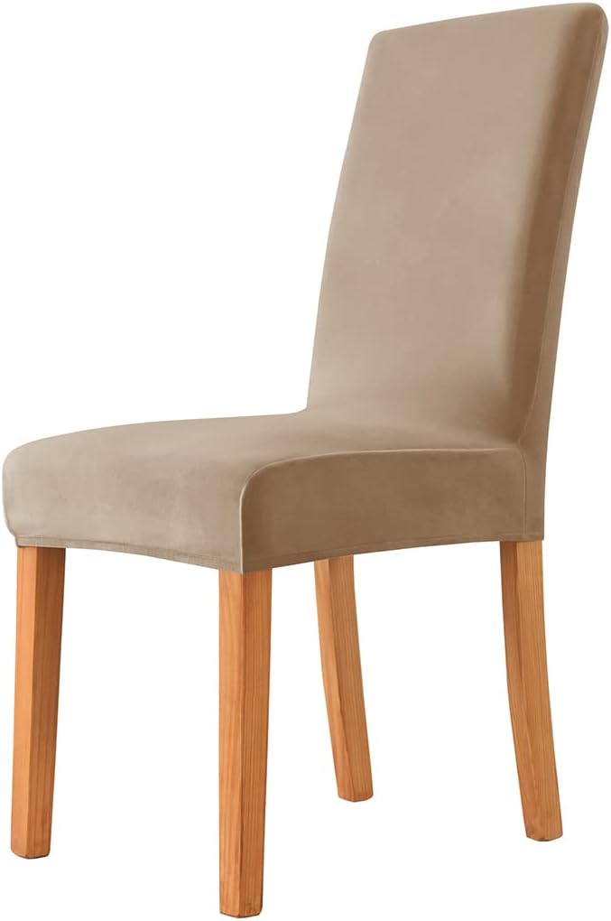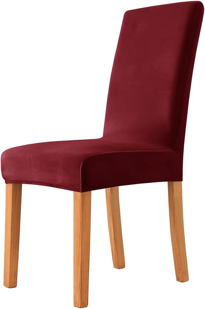 Crafted from rich velvet plush fabric, super stretchable for most chairLuxury material create a custom, reupholstered look, make your old furniture appear brand new!Fabric: velvetSize:Chair back height: 18-23in(47-60cm)Chair back width: 15-19in(38-48cm)Chair seat width and length: 14-19in(38-48cm)Chair seat thickness: 1.5-5.5in(4-14cm)Packing list: 2/4/6/8 Pieces dining chair coversNo more worries about spills, pets and kids.These dining chair covers can be used for kitchen, bedroom, living room decoration, restaurant, cafe, studio, office or hotel, meeting, party, Christmas, wedding banquet, celebration, ceremony, etc.Give the chair a whole protection and compacted effect. Smooth and wrinkle free which add luxurious and refresh decor to your home furnitureEASY CARE:Machine washing in cold, do not bleach, tumble dry lowDue to different monitor or screens, colors may a slightly different as you see, but never change itself attractions