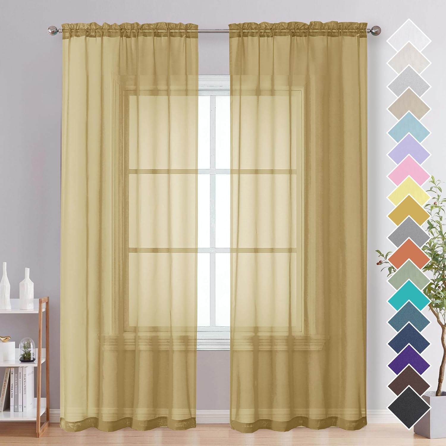 OVZME Blush Pink Sheer Curtains 120 Inches Long 2 Panels - Soft Light Filtering Window Sheer Panels for Living Room/Bedroom, Top Dual Rod Pocket, 1 Pair, Each 42Wx120L Inches