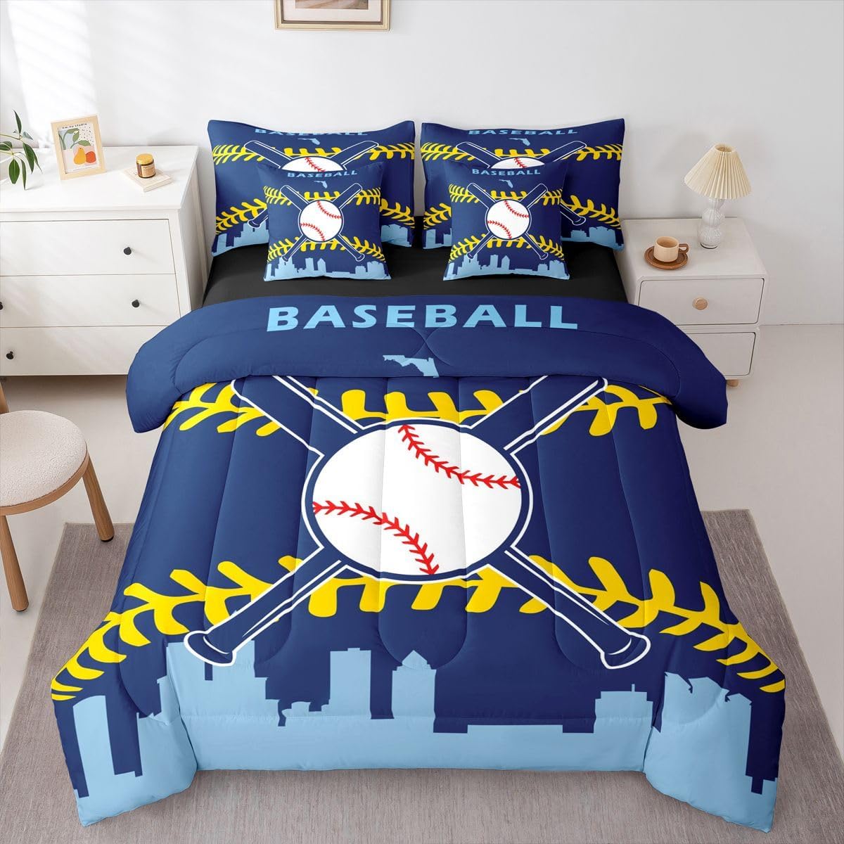 Erosebridal 7 Pcs Comforter Set Queen Size,Baseball Fans Bed in a Bag with Flat Sheet and Fitted Sheet for Kids and Adults,Baseball Team Bedding Set with Pillowcases and Cushion Cases(Texas)