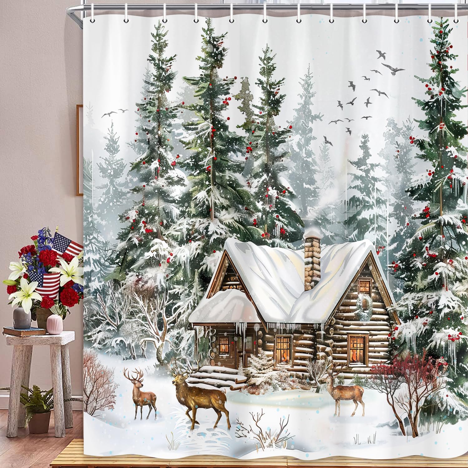 Thank you for choosing our products. We are a company specializing in the production of shower curtains and bath mats. We have many years of production experience and rich product styles. Each shower curtain picture is carefully designed by our designers.About Bath Curtain:We can provide shower curtains set in various designs such as farmhouse, country, boho, animal, nature themed and more. It can not only be used to decorate your bathroom, shower, but also can be used as a good gift for family and friends to add more fun to your life. Packing Information: 1 bathroom curtain, 12 plastic hooksNote: If there are creases on the bathroom sets, please iron it lightly. Please allow 1-2cm error due to manual measurement. Due to differences between different monitors