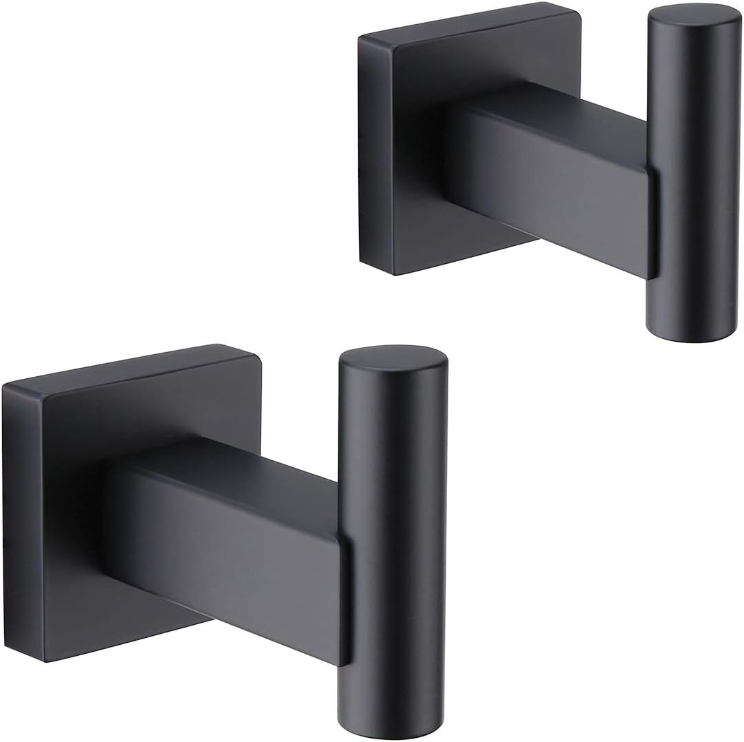 Bathroom Lavatory Single Coat and Robe Hook Wall Mount, Stainless Steel Bath Towel Hook 2 Pack Black & Gold