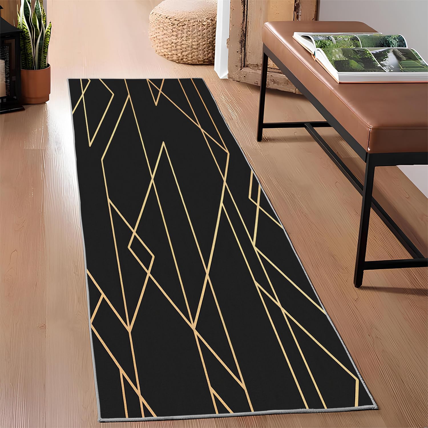 Geometry Area Rug 2x3, Golden Lines Washable Entryway Rugs Indoor, Non Slip Low Pile Area Rug for Bedroom Carpet, Small Rugs for Office Nursery Play Mat(B39)