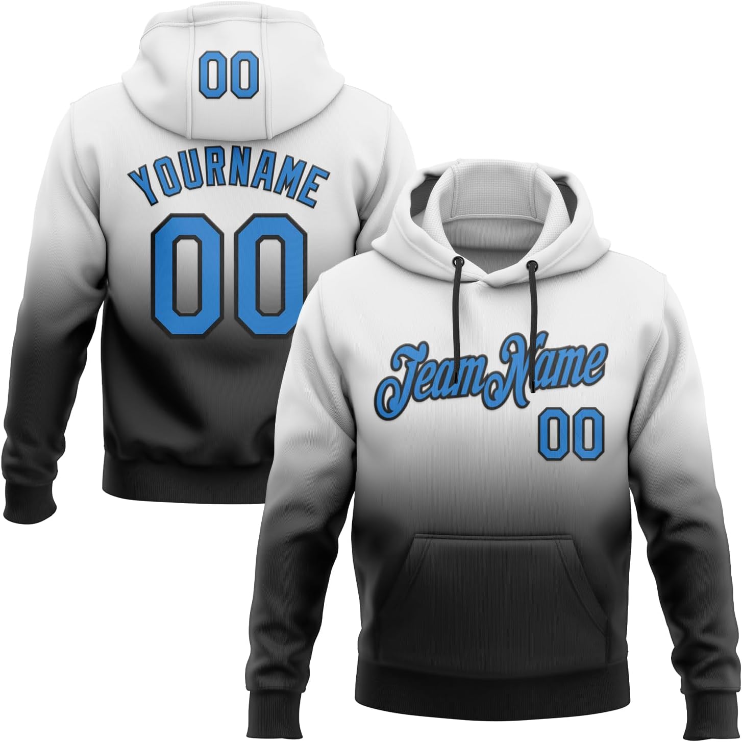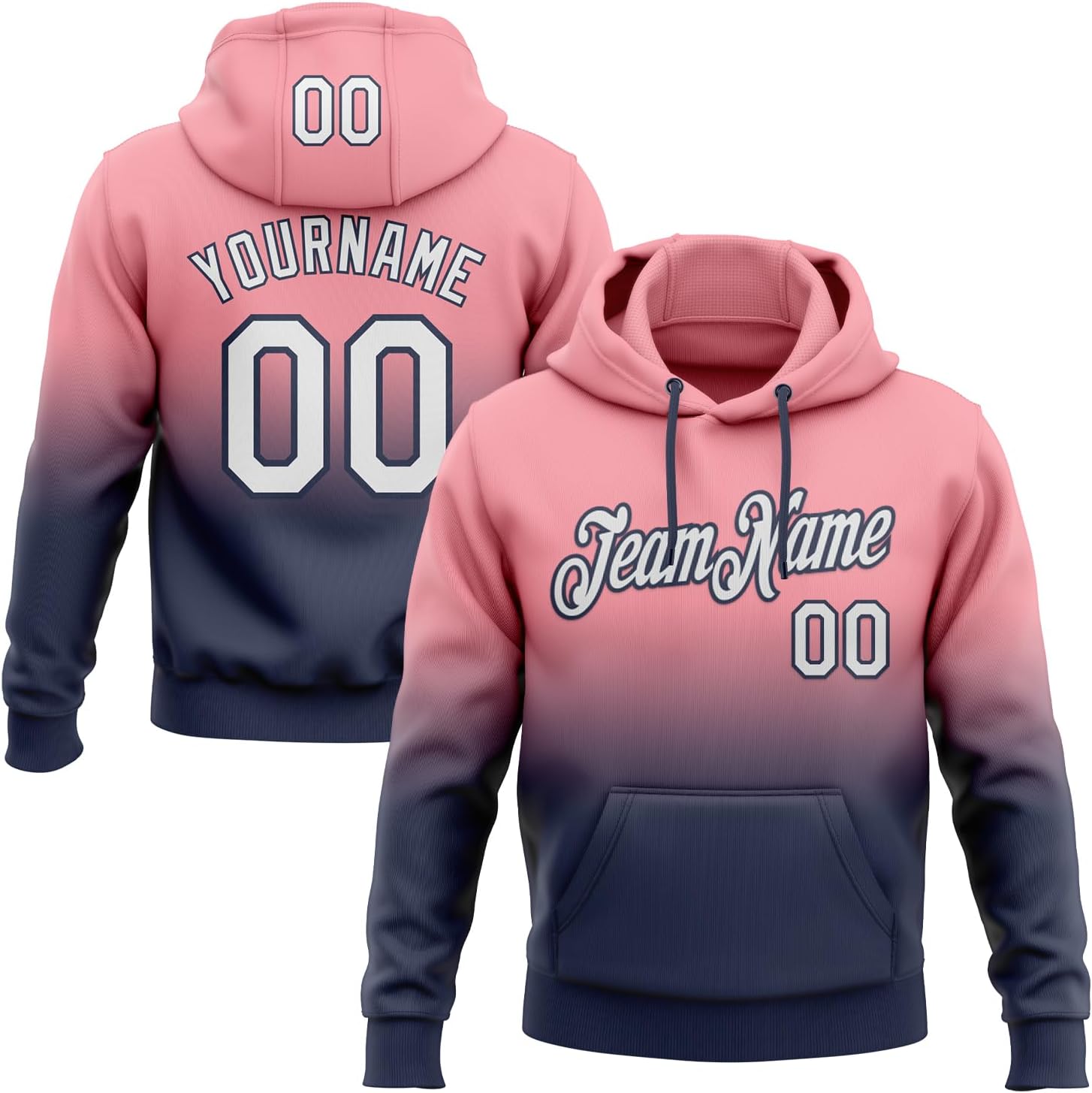 CUSTOM GRADIENT FASHION BASEBALL FOOTBALL HOODIE Personalized Novelty Two Tone Fade Hooded Neck Long Sleeve Sports Pullover Sweatshirts with Name Number Logo Stitched on Front Back & Hood for Men Women Youth Boys Girls How to customized your personalized fade style football pullover hoodie? Step 1: Choose the color that you want, click The "Customize Now" button; Step 2: Please choose your the size you want; Step 3: Enter your name or player name, number and the Logo that you wanna design; Step 4: An unique customized sports pullover hooded sweatshirts you want finished. Specifications: Material: 100% Polyester Colors: As shown Stitched team or player name, numbers and logo Technology fleece fabric helps to manage your body's natural heat to keep you warm Breathable & quick-drying; exquisite stitching not easy to fall off Moisture-wicking fabric has spongy handle, good draping property and elasticity as well as good dimensional stability and wrinkle-resistance Front pouch pocket Midweight hoodie suitable for moderate temperatures Tagless collar Wash Method: Machine wash, Tumble dryer(natural air drying recommended). Quality Assurance & Customer Service: All sizes are US sizes, please check carefully before placing an order. The colors may exist slight difference due to different screens. If you have special ideas about the design, please contact us via email or leave a note on the customization page. We will do our best to meet your requirements. We strictly control the quality of each softball jersey shirts and provide worry-free after-sales service. If you receive a product with quality issues, please contact us promptly, we will reply within 24 hours.